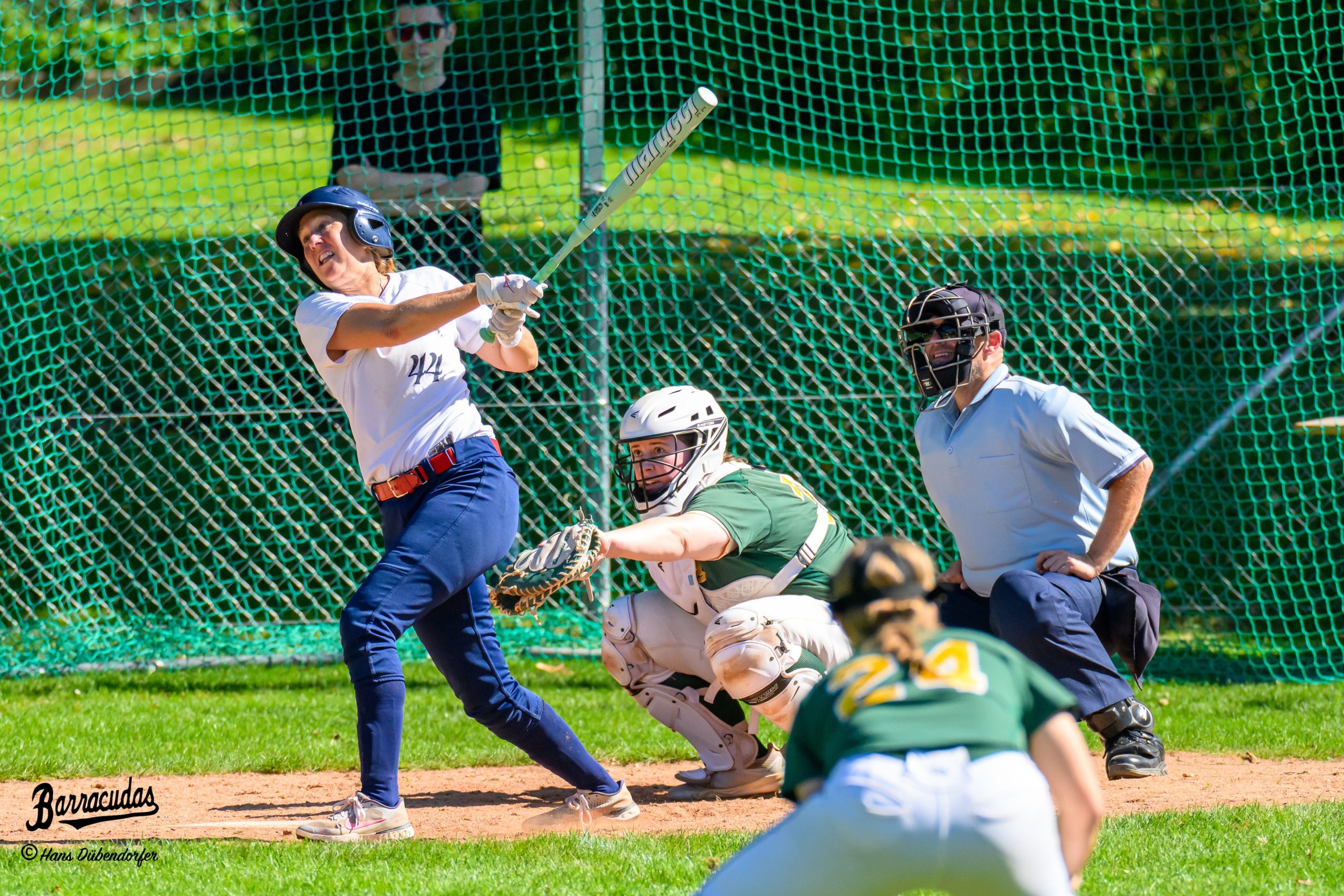 Die Pause zwischen den beiden Spielen tat den Challengers sichtlich gut. Jedenfalls konnten sie die zweite Partie lange ausgeglichen gestalten. Sowohl Challengers Starterin Karen Heimgartner als auch Barracudas Pitcherin Faith Weber hielten die gegnerischen Bats unter Kontrolle, sodass erst im vierten Inning erstmals Gefahr entstand, als die Challengers zwei Runners auf der zweiten und dritten Base hatten. Weber zog jedoch auch hier den Kopf aus der Schlinge. Besser machten es die Barracudas im fünften Durchgang, wobei die Szene eher durch Zufall entstand. Bei geladenen Bases und einem Out traf Jessica Rölli den Ball nicht wie gewünscht, entschied damit aber letztlich das Spiel. Denn der Ball kam gerade einmal fünf Meter weit, was es der Gäste Defense aber unmöglich machte, ein Out an der Homeplate zu erzielen. Der Versuch das Play doch zu schaffen, missriet, ein weiterer Fehler kam hinzu und so kamen die Barracudas auf den eigentlich missratenen Hit zu drei Runs. Anschliessend gelang Faith Weber mit einem RBI-Double gar noch das 4-0. Mit dem Saisonende vor Augen bäumten dsich die Challengers nochmals auf. Im sechsten Inning hatten sie diesmal mit null Outs erneut Runners auf der zweiten und dritten Base. Und diesmal konnten auch die Gäste einkassieren. Isabelle Tan brachte mit einem RBI-Single Taylor McCants nach Hause, ehe den Barracudas ein wichtiges Double Play gelang, sodass die Challengers durch einen Wild Pitch etwas später lediglich zum 2-4 kamen. Im letzten Inning setzte aber Nationalspielerin Mariah Jameyson mit einem sehenswerten Solo-Homerun zum 5-2 ein Ausrufezeichen hinter die Serie. Die Offensive der Barracudas war letztlich zu stark. Diese treffen nun im Final am kommenden Wochenende wie im Vorjahr auf die Wittenbach Panthers. (Foto: Hans Dübendorfer)
